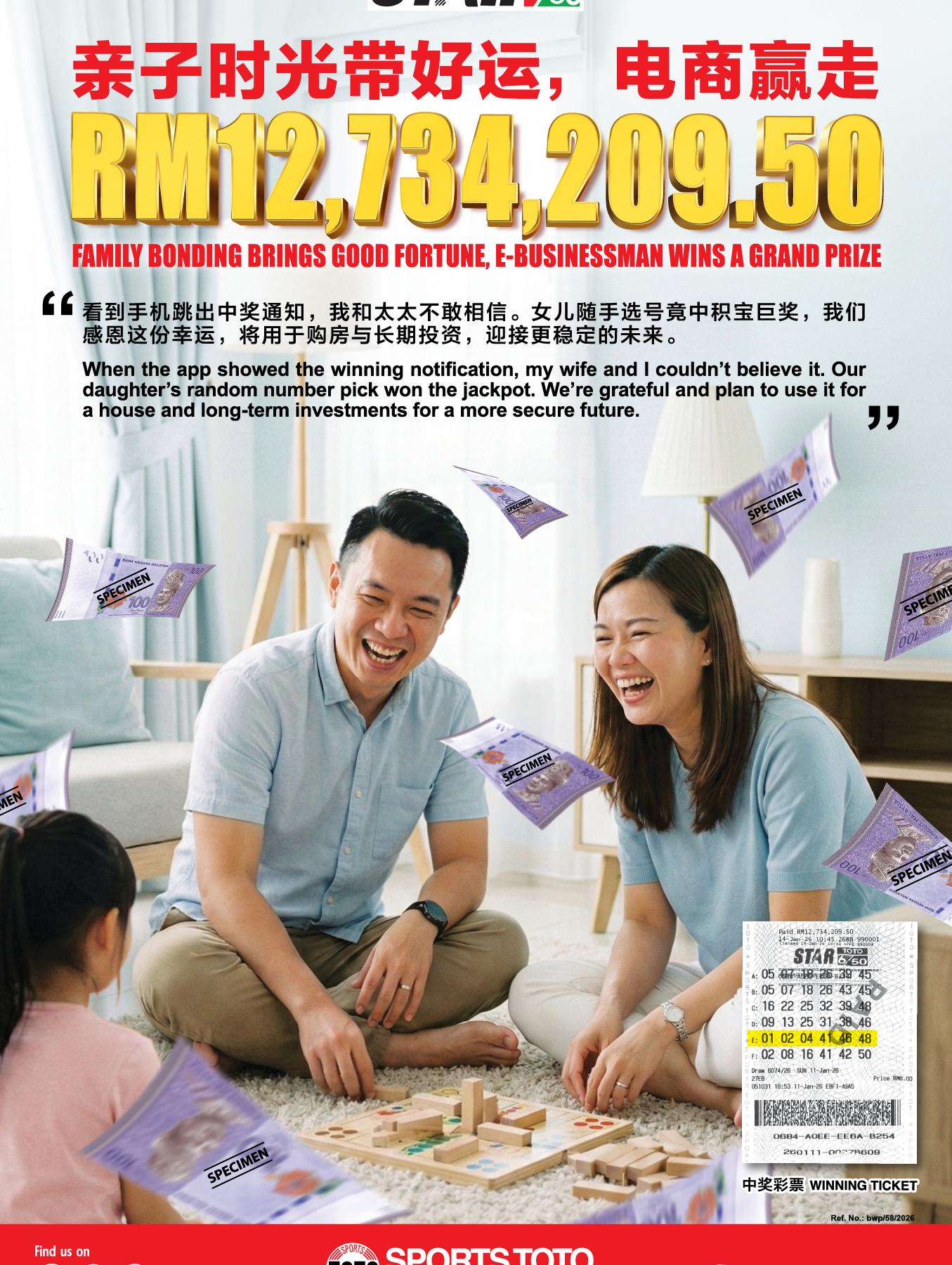 新婚女儿“运气逼人”商人喜结良机赢大奖!RM4,700,000 !