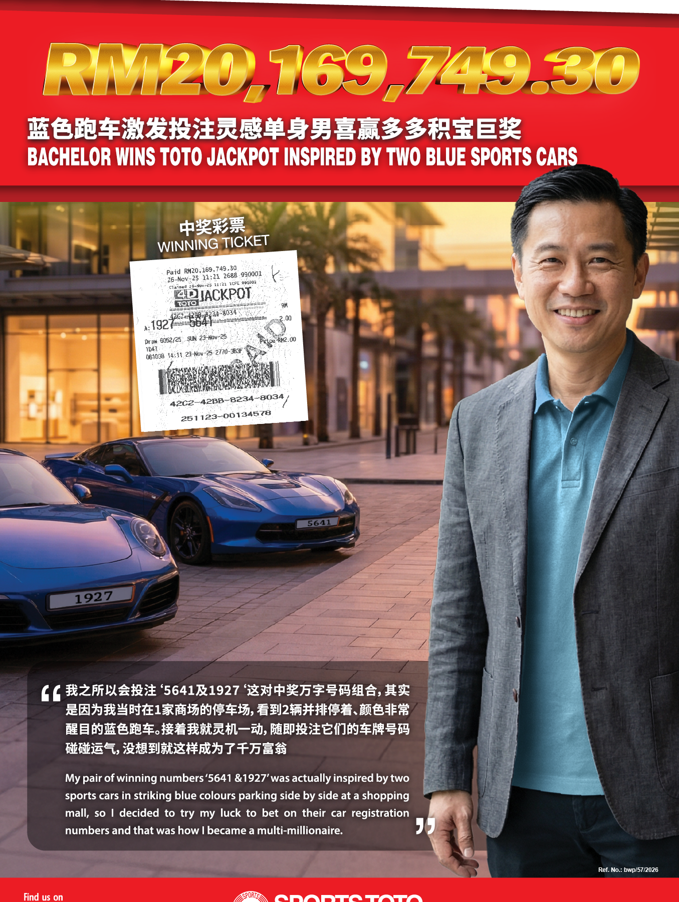 真金不怕红炉火,小贩独赢博彩业史上最大的奖金RM20,000,000.00!