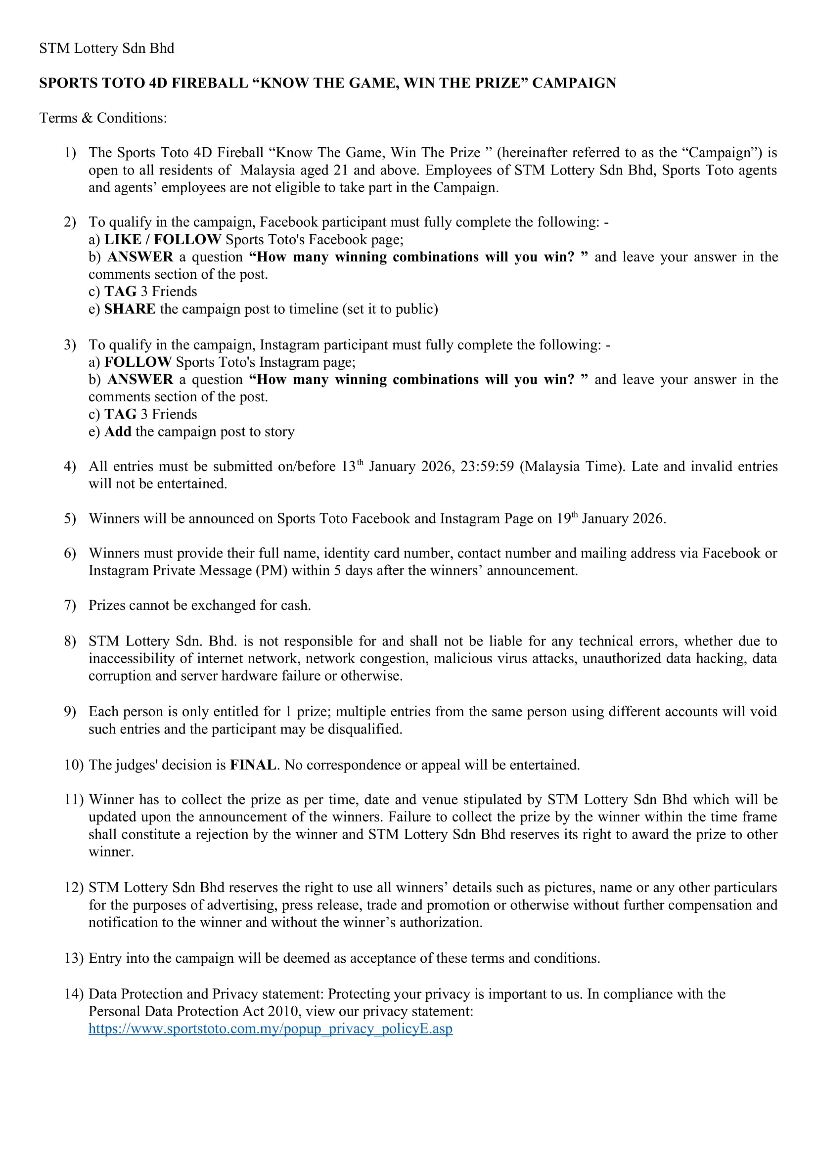 SPORTS TOTO 4D FIREBALL" KNOW THE GAME, WIN THE PRIZE" CAMPAIGN